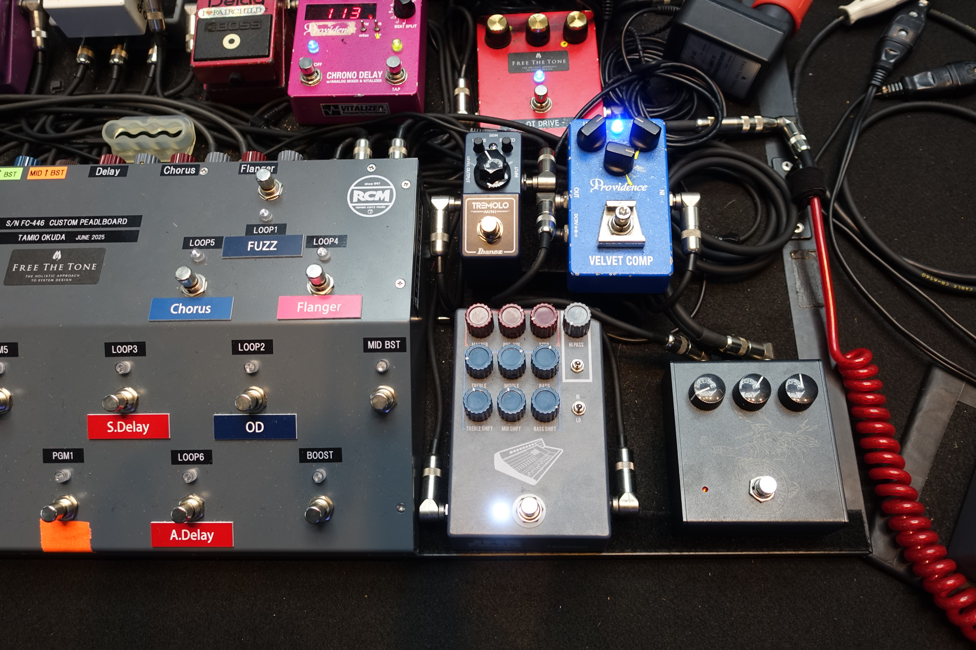 On September 11 and 12, 2025, the Ooochie Koochie Nippon Budokan shows were held. We would like to showcase the gear used by Tamio Okuda. His guitar system centered around a custom pedalboard built by FREE THE TONE. Please also take a look at the newly released custom pedalboard feature article (published on September 8).