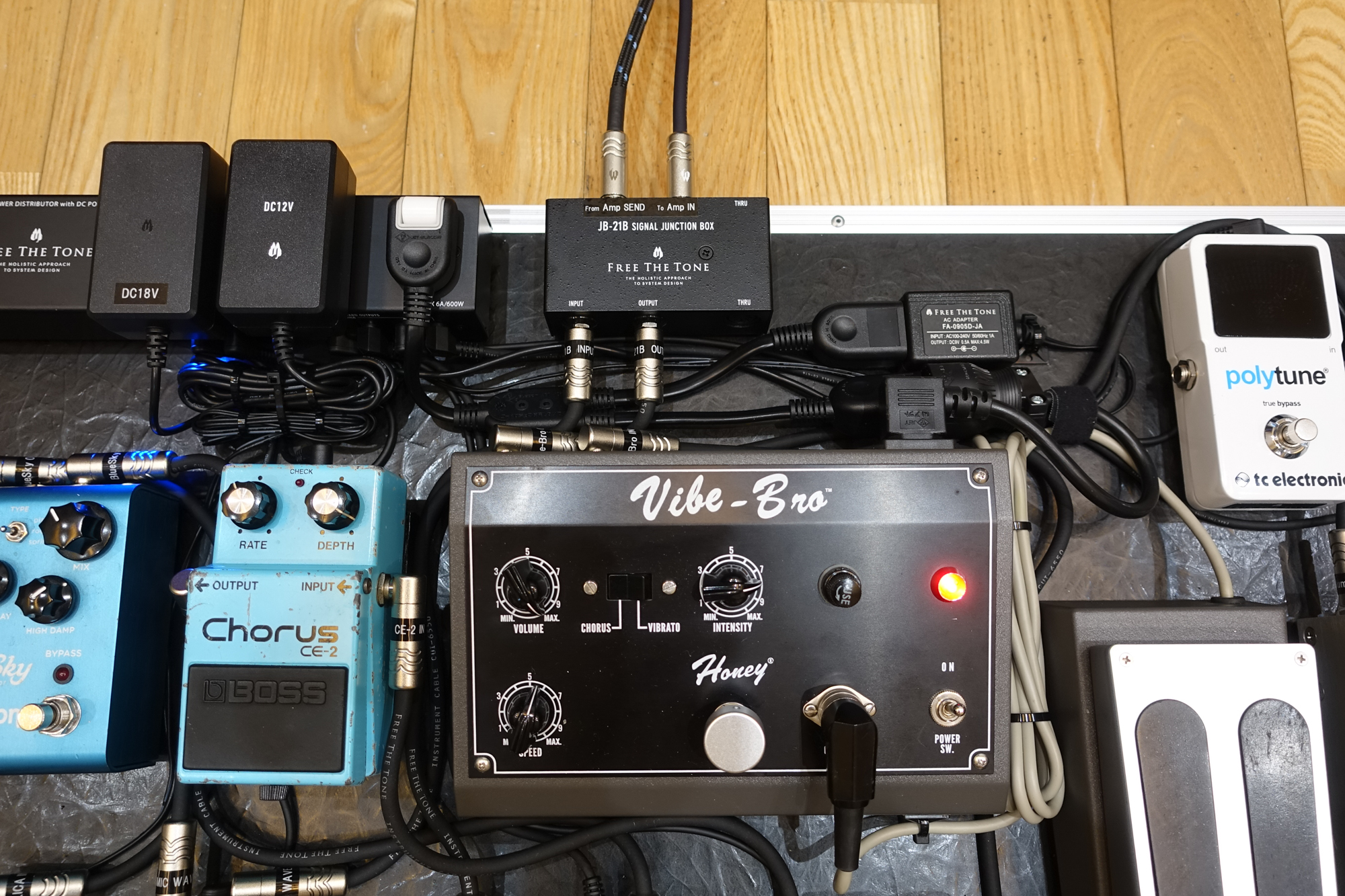 This pedalboard was built at FREE THE TONE, upon his request during his visit in Japan in 2025. His request was to build a pedalboard, that has the best sound quality, and works amazingly with the combo amplifiers and the ones with FX loops.